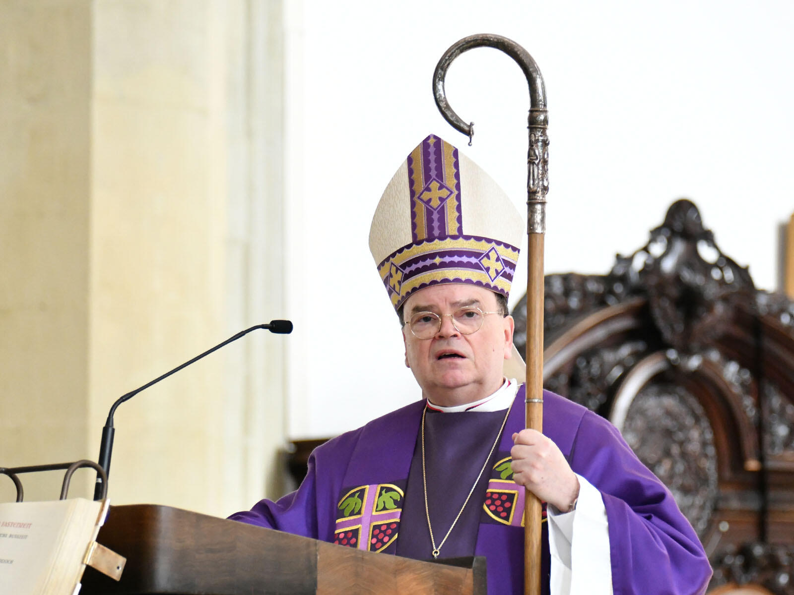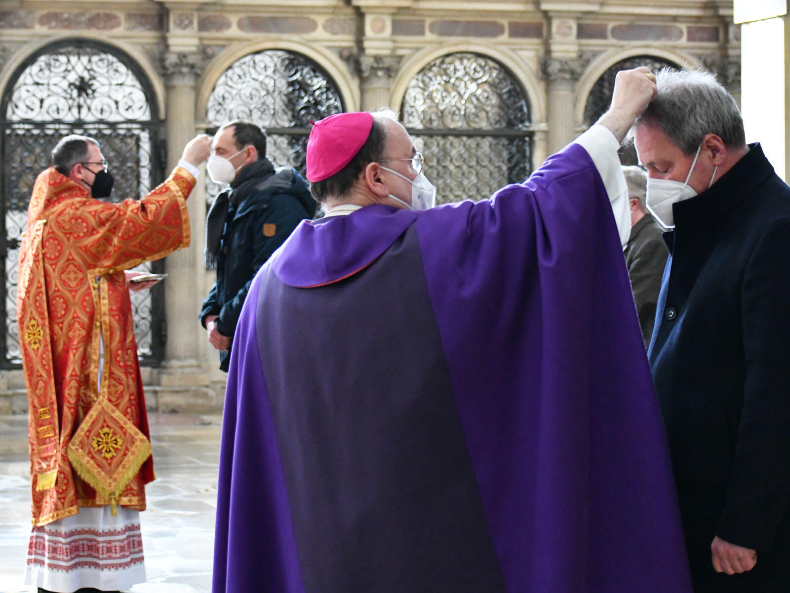 „Darin liegt der tiefste Sinn des Aschenkreuzes: Loslassen lernen, um im Lieben neu leben zu lernen. Bedenke Mensch, dass du Staub bist und zum Staub zurückkehren wirst. Bedenke aber auch, dass du mehr bist als ein Häuflein Elend“, sagte der Bischof abschließend in seiner Predigt. Bereits bei unserer Taufe sei uns ein Chrisamkreuz aufgetragen worden, das unsere Verbindung mit Christus in unauslöschlicher Weise zeige: „Das Kreuz stellt auch den Choral auf den Kopf. Nicht nur: Mitten im Leben sind wir vom Tod umfangen. Sondern auch: Mitten im Tod sind wir vom Leben umfangen. Es geht los: Ostern entgegen, dem Fest des Lebens!“