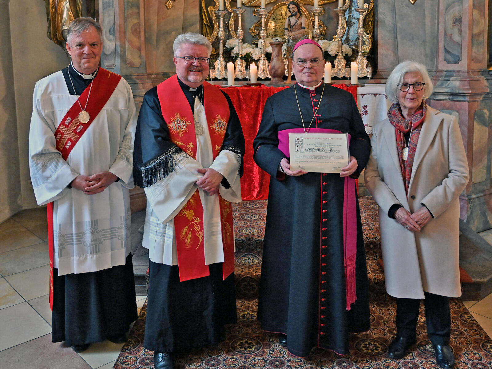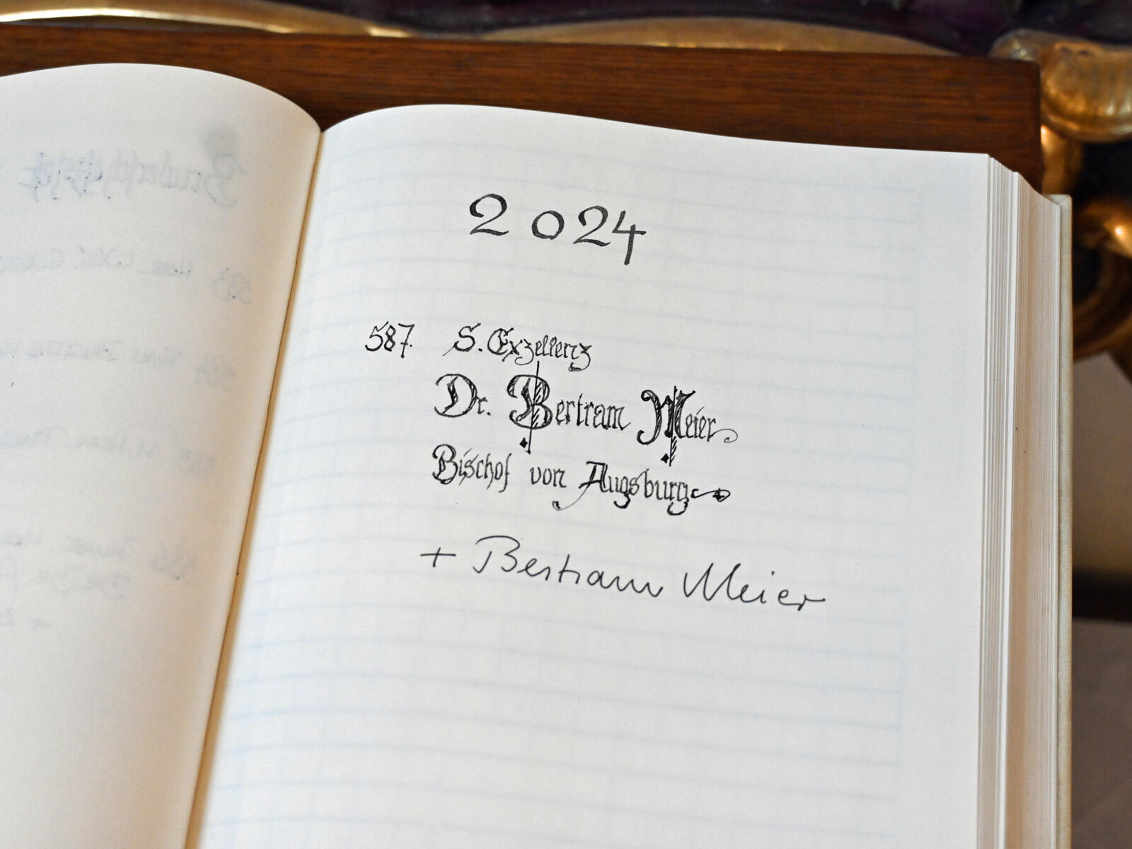 Im Rahmen einer feierlichen Vesper in der Marienkapelle des Augsburger Domes wurde Bischof Dr. Bertram Meier am Freitagabend in die „Bruderschaft zum Gegeißelten Heiland auf der Wies“ aufgenommen. Als Zeichen seiner Mitgliedschaft trug er sich in das Bruderschaftsbuch ein.