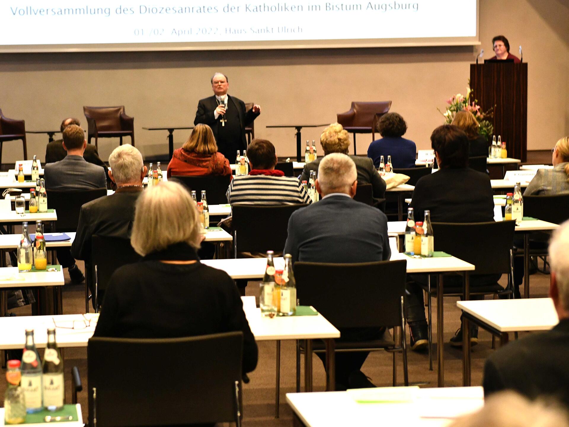 Bischof Bertram sprach bereits zu Beginn der Vollversammlung all jenen einen „großen Dank“ aus, „die sich auf die Welle der Solidarität mit der Ukraine eingelassen haben: durch Gebet, Hilfsbereitschaft und Spenden“. Gleichzeitig wies der Bischof darauf hin, welchen Beitrag das Bistum Augsburg leistet, um Geflüchteten aus der Ukraine zu helfen. Er nannte als ein Beispiel unter vielen finanzielle Zuschüsse für Kirchenstiftungen, die Flüchtlingen in einem ortskirchlichen Gebäude eine Unterkunft stellen – vorausgesetzt, der Landkreis oder die Kommune übernehmen keine Nebenkosten. Insgesamt würden für die Ukraine-Flüchtlingshilfe von Seiten des Bistums Sondermittel in Höhe von 2,5 Millionen Euro bereitgestellt.