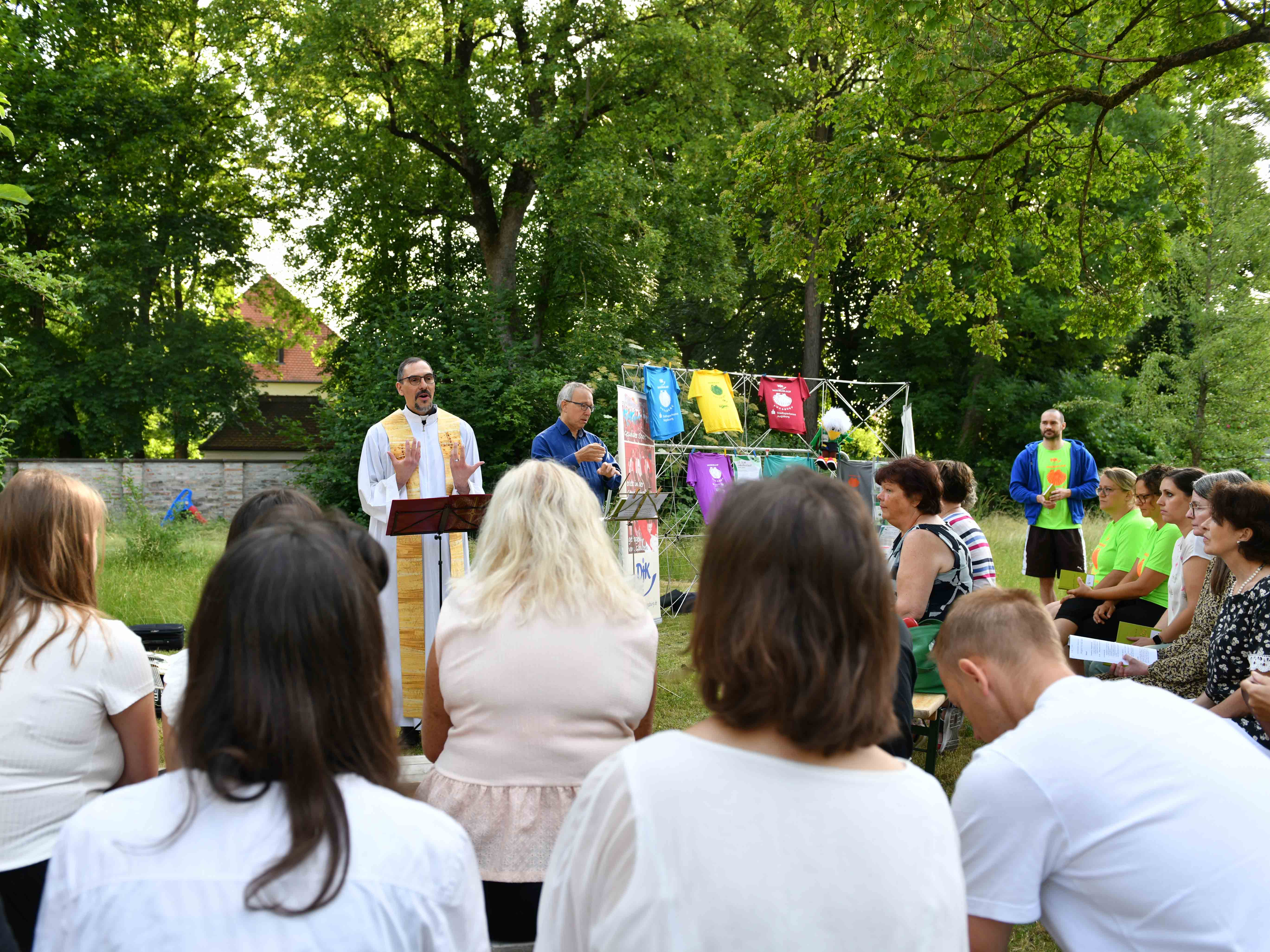 Auf der Wiese des Dompfarrhofs lud Pfarrer Zitzler mit spirituellen Impulsen zu einem ganzheitlichen Blick auf unser Leben und die Gesundheit ein. Zur Vitalität des Köpers gehöre es auch, der Seele Raum zu geben. Gerade in Zeiten der Krise bräuchten wir Kraftquellen für das Leben, die er als „Fitnessstudios für die Seele“ bezeichnete.