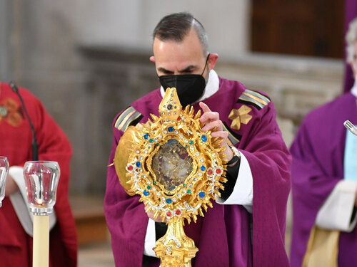 „Wir leben in einer historischen Zeit“, betonte der Bischof eingangs in seiner Predigt und stellte das große und berechtigte Vertrauen in den Vordergrund, dass die Menschen angesichts einer weltweit wütenden Pandemie vielfach in Forschung, Medizin und Wissenschaft legten. Dennoch sei die Bilanz heute ernüchternd: „In den vergangenen Monaten fuhren wir gesellschaftlich und emotional Achterbahn: Statt die Solidarität für die Schwächsten - Hochbetagte, Menschen mit Vorerkrankungen, Kinder und Jugendliche – durch die eigene Impfung zu stärken, wurde öffentlich und vor allem in den sozialen Medien Angst und Ablehnung, ja Hass gegen die Impfbefürworter geschürt“ – ein Fehlverhalten, dass leider auch innerhalb der Kirche aufzufinden sei. Mit Bezug auf das aktuelle Infektionsgeschehen wiederholte der Bischof seine bereits des Öfteren geäußerte Aufforderung: „Machen wir Christen unserem Namen Ehre und übernehmen wir Verantwortung, jede und jeder in der Weise, wie es dem Erhalt des Ganzen dient!“