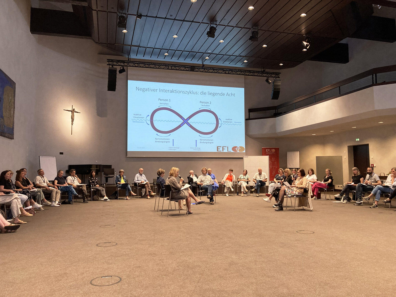 Von erbitterterten Konflikten zur liebevollen Kommunikation – was schier unmöglich erscheint, ist das Ziel der Emotionsfokussierten Paartherapie nach Sue Johnson. Knapp 60 Expertinnen und Experten der 25 psychologischen Beratungsstellen für Ehe-, Familien- und Lebensfragen (EFL) im Bistum Augsburg waren am 18. und 19. Juni zusammengekommen, um sich mit diesem therapeutischen Ansatz vertraut zu machen.