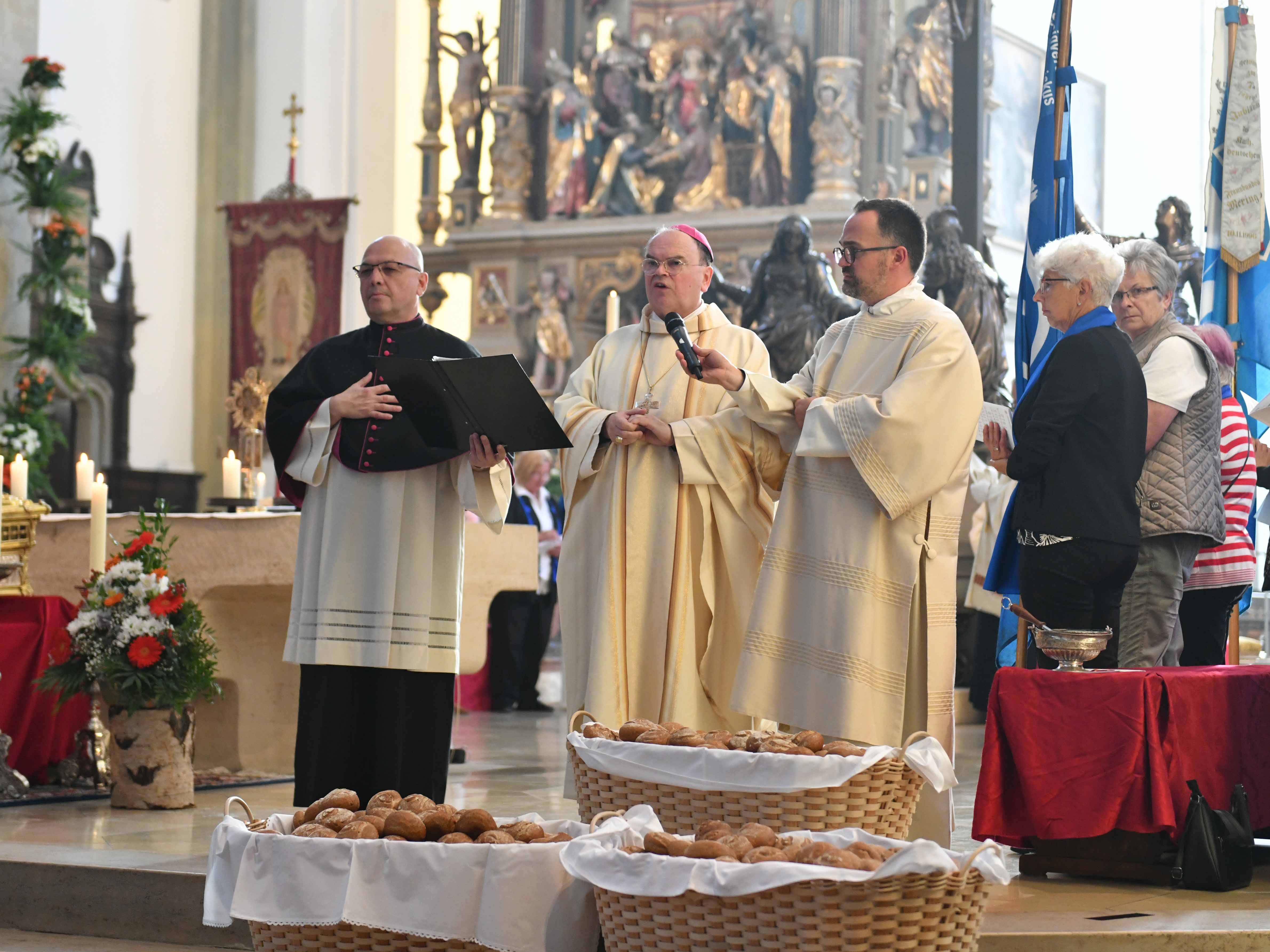 Ein Brauch, der bereits bei der ersten Frauenwallfahrt 1947 eingeführt worden war, durfte auch im diesjährigen Jubiläumsjahr nicht fehlen. So standen bereits zu Beginn des Gottesdienstes mehrere geschmückte Körbe voller Ulrichsbrote als Zeichen der Versöhnung und Solidarität vor dem Altar bereit. Die Brote wurden am Ende der Messe von Bischof Bertram geweiht und bei einem gemeinsamen Frühstück im Haus St. Ulrich von den Frauen gemeinsam verkostet.