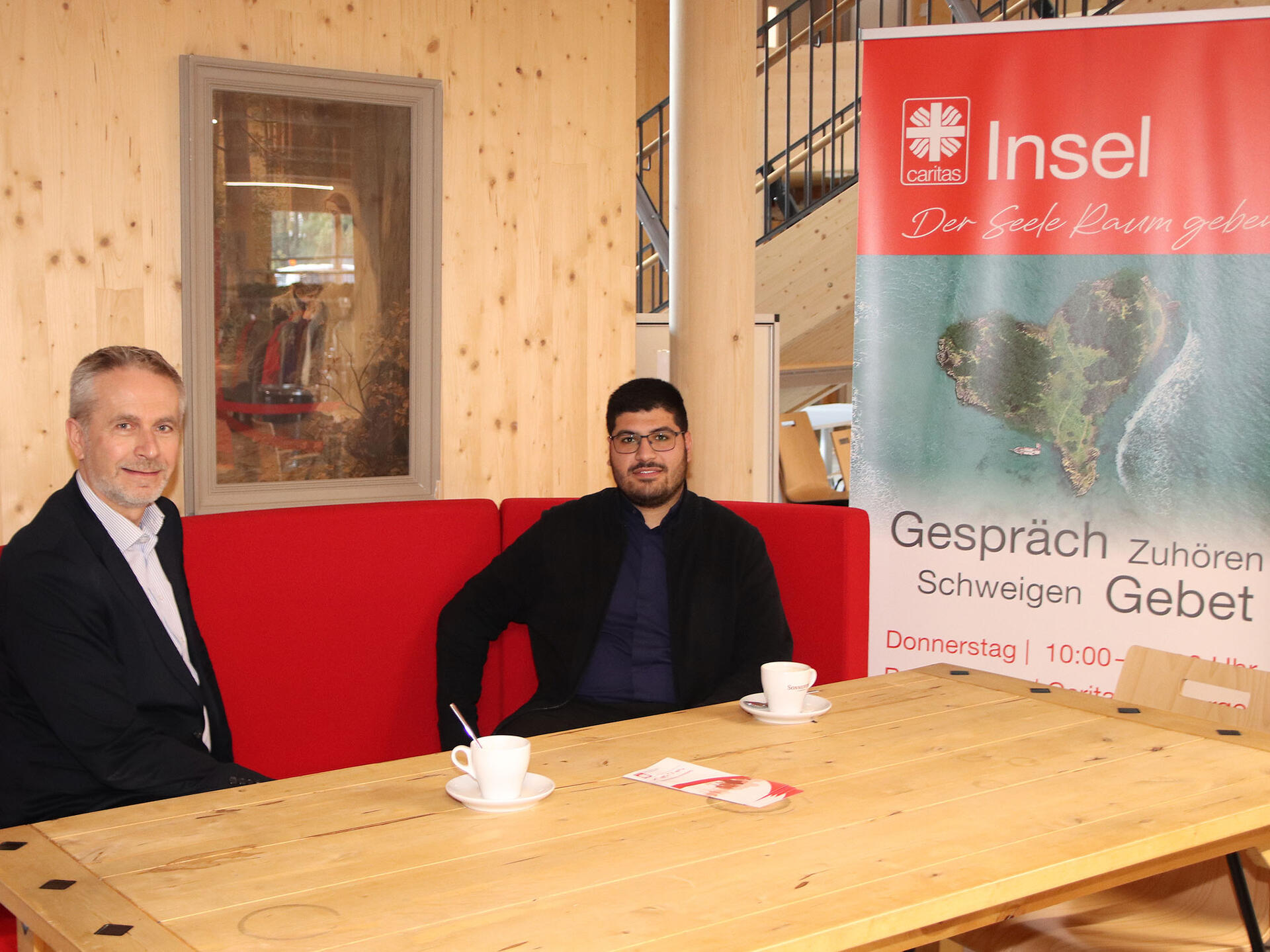 Die Berater/-innen des Caritasverbandes in der Depotstraße sind dankbar für das Angebot der Caritas-Insel. Sie merken nur allzu oft, dass fachliche Beratung und Hilfen nicht immer ausreicht. „Menschen in Not brauchen auch seelischen Zuspruch“, sagt Otto Bachmeier, Geschäftsführer des Caritasverbandes für die Stadt und den Landkreis Augsburg e.V. Auch den Mitarbeiter/-innen der Caritas liege so manche Frage zu Gott und die Welt auf der Seele. „Selbstverständlich bin ich dann auch für sie da“, so Gök. Die Caritas-Insel sei ja eine Insel für die Seele, und so sei niemand auch ausgeschlossen, sich dort einmal auf die Couch zu setzen und zu reden.