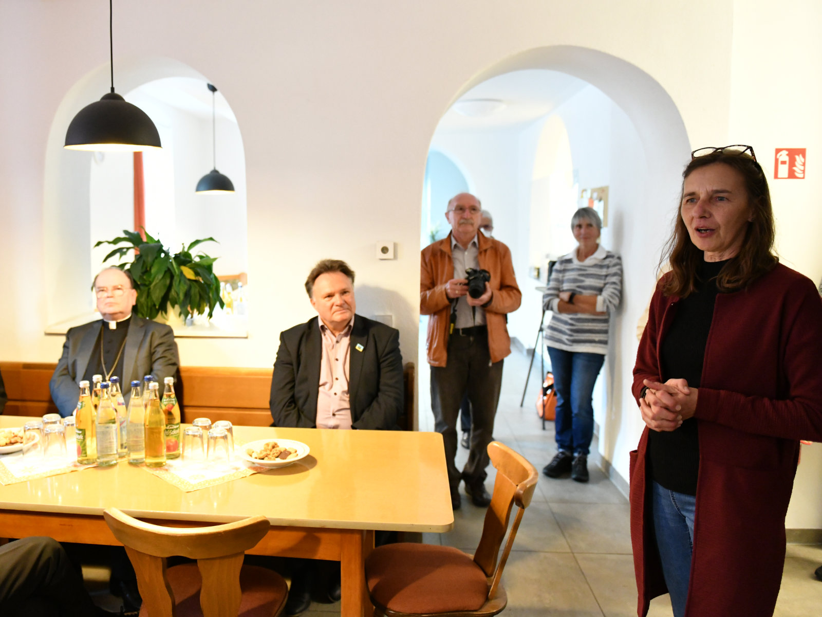 Mit dem SKM Kaufbeuren waren die beiden Bischöfe bereits vor dem Gottesdienst bei einer dieser Einrichtungen zu Gast. Die Geschäftsführerin Gabriele Boscariol betonte dabei die wichtige Rolle der SKM-Wärmestube als „Wohnzimmer“ oder sogar „Familienersatz“ für viele Menschen. Die Martinstradition werde dabei auch bewusst gepflegt, etwa wenn jedes Jahr an Martini Kindergartenkinder auis Kaufbeuren in der Wärmestube vorbeikämen und die Menschen dort beschenkten: „Wir teilen das, was wir haben und was wir an die Menschen, die da kommen, weitergeben können.“