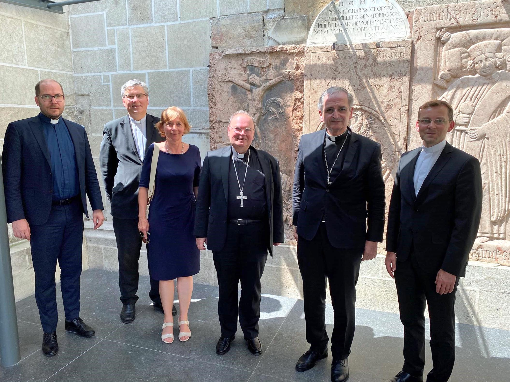 Wie gefestigt die katholische Kirche trotz der jahrzehntelangen Unterdrückung unter kommunistischer Herrschaft ist, erfuhr der Bischof im Gespräch mit dem Vorsitzenden der Slowakischen Bischofskonferenz und Erzbischof von Bratislava, Stanislav Zvolenský. Dieser berichtete vom Wiederaufbau der kirchlichen Strukturen nach 1990 und den aktuellen Herausforderungen. Die Kirche lerne derzeit, sich als ein Miteinander aller Gläubigen – von Laien und Klerikern – zu verstehen. Die beiden Bischöfe tauschten sich über Wege und gelebte Formen von Synodalität in beiden Ländern aus. Einige Verantwortliche, die die Umsetzung des von Papst Franziskus angestoßenen weltkirchlichen synodalen Prozesses in der Erzdiözese Bratislava und im ganzen Land betreuen, berichteten über ihre Erfahrungen. An dem Gespräch nahmen auch der Exekutivsekretär der Slowakischen Bischofskonferenz, Dr. Ivan Ruzicka, und der Weihbischof von Bratislava, Jozef Haľko, teil. Bischof Meier betonte die Bedeutung des Austauschs über die synodalen Initiativen in beiden Ländern: „Dies ist für alle Seiten bereichernd. Mit Erzbischof Zvolenský stimme ich überein, dass die Erfahrungen aus den nationalen Initiativen wertvolle Impulse für die Weltkirche geben.“