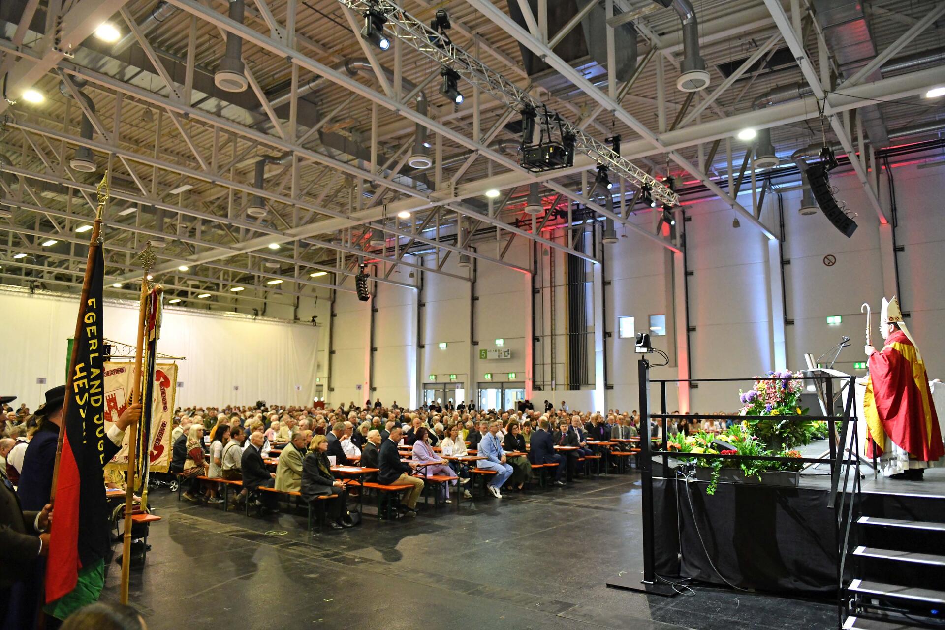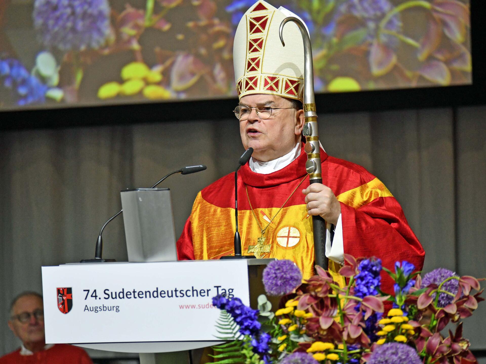 Völkerverständigung, Dienst am Gemeinwohl sowie den Aufruf zu Vergebung und Frieden hat Bischof Dr. Bertram Meier als göttliche Aufträge aus dem Pfingstereignis benannt. „Glauben wir daran, dass Sein Heiliger Geist auch heute noch in uns wirkt und wir alle gesendet sind, um diese Welt zu einem besseren und friedlicheren Ort zu machen“, ermutigte der Bischof die Teilnehmerinnen und Teilnehmern des Sudetendeutschen Tages. Gemeinsam mit ihnen feierte er an diesem Pfingstsonntag den festlichen Gottesdienst in der Augsburger Messe.