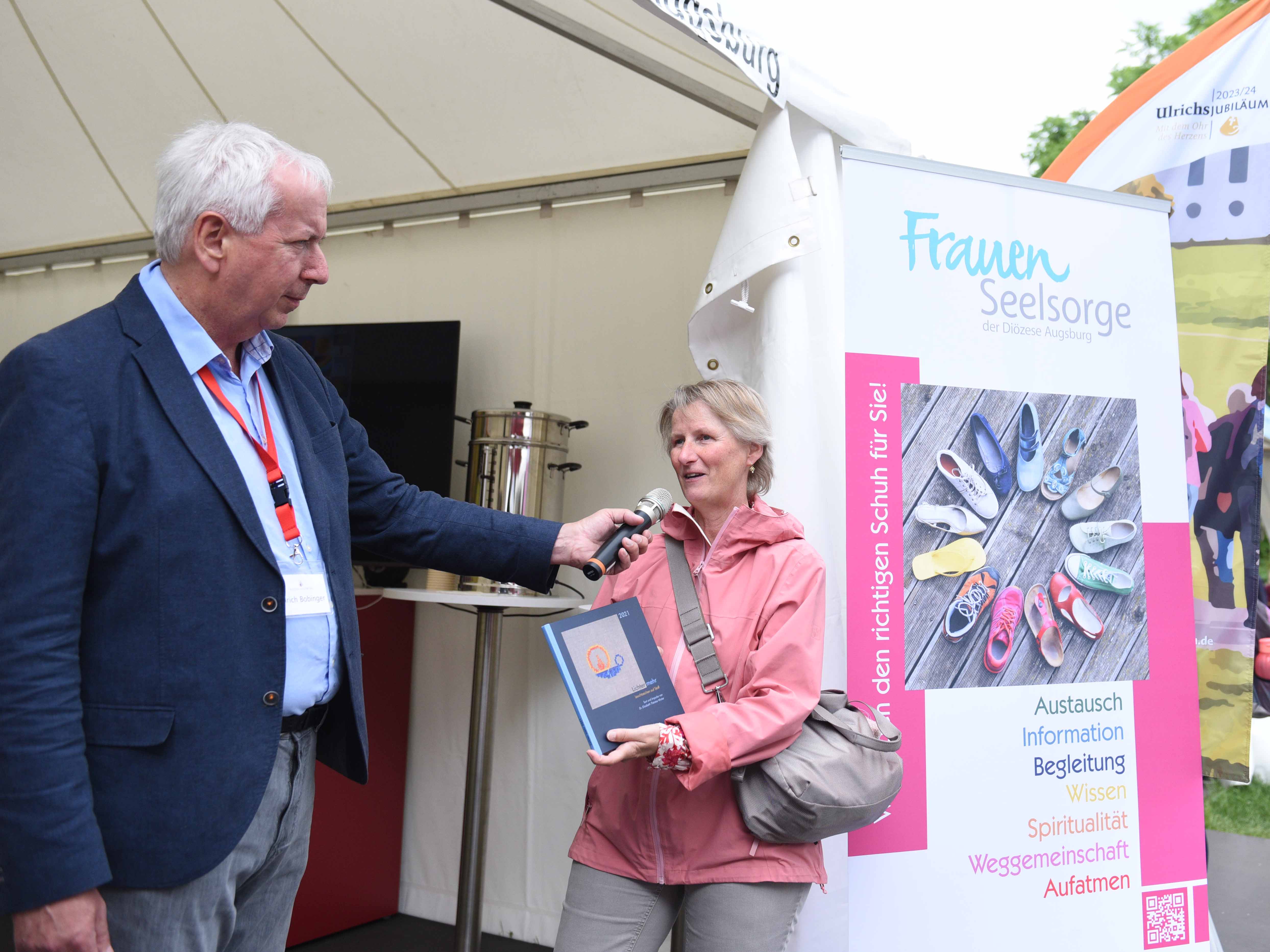 Was der Hl. Ulrich und das Jubiläumsjahr mit dem Thema Weltkirche zu tun haben, davon wusste Anton Stegmair am Augsburger Stand zu berichten. „In der Weltkirche ist uns der Weitblick des Hl. Ulrich sehr wichtig. Den möchten wir betonen“. Die Blickrichtung gehe hierbei verstärkt nach Afrika, wo man Beziehungen festigen wolle, so Stegmair.