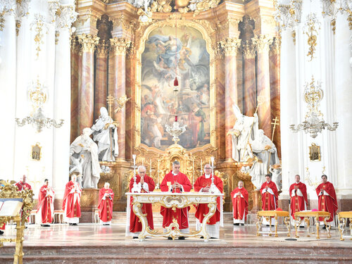 Im vorhergehenden, vom Nuntius gefeierten Pontifikalamt im Dießener Marienmünster betonte Bischof Bertram als Prediger, dass eine visionäre Kirche auch marianisch sein und denken müsse: „Die Kirche wird wieder Träume und Visionen haben, wenn sie ernst nimmt, was sie ist: Empfangende. Wir werden Hoffnungsträger, wenn wir die Muttersprache des Glaubens wieder besser lernen“. Diese von der Gottesmutter vorgelebte Empfänglichkeit für Gottes Wort sei gerade in heutiger Zeit von großer Bedeutung, wo das Haben allzu oft über das Sein dominiere.
