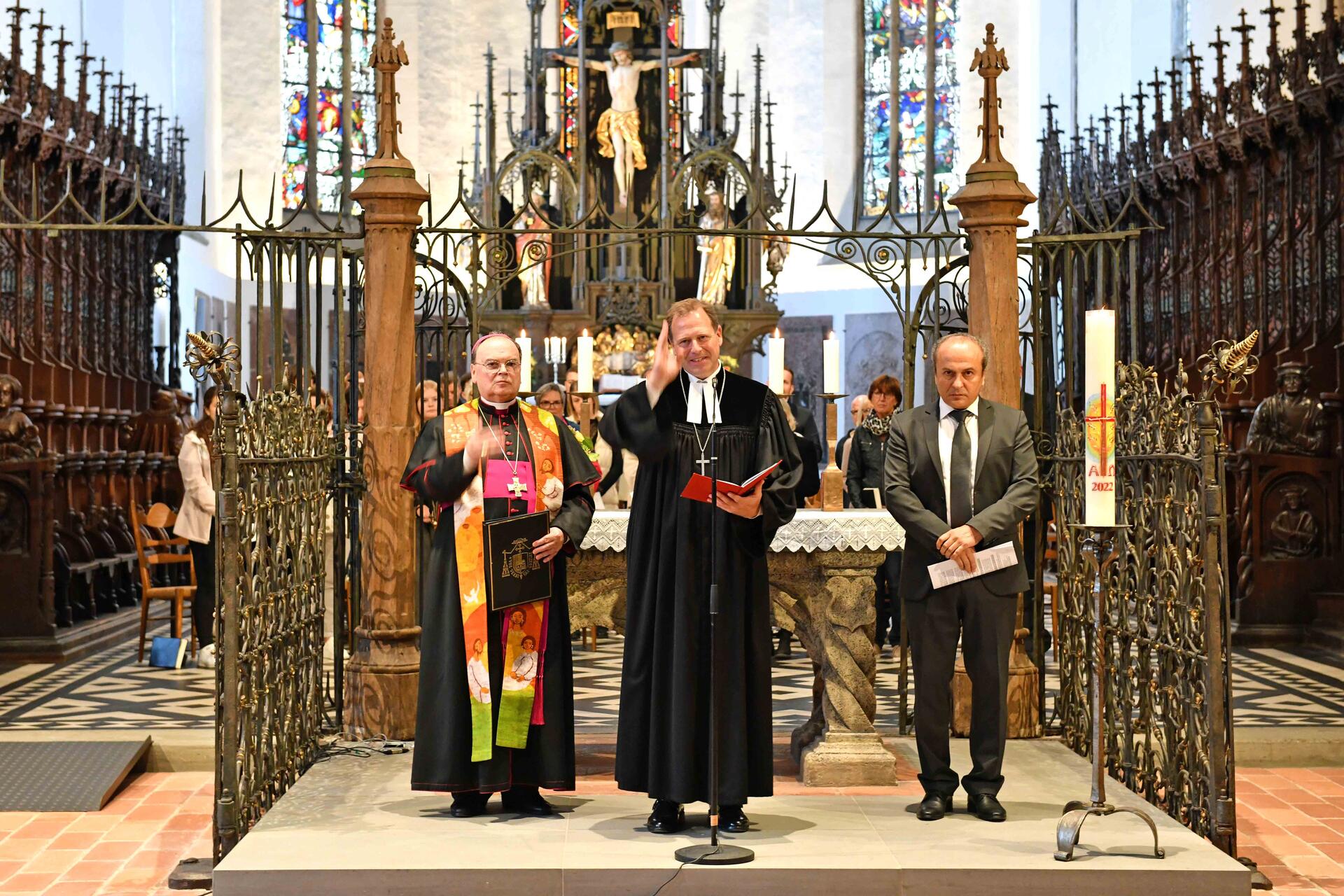 In seiner Begrüßung wies der ACK-Vorsitzende Müller auf die immer wieder erhobene Forderung hin, „es ist an uns, die Welt zu retten“. Das sei falsch, betonte der evangelisch-lutherische Pfarrer, das können wir nicht und das werden nicht“. Wir alle seien hier versammelt, den Gott zu bekennen, der die Welt rettet und gemeinsam zu bezeugen, dass wir von seiner Gnade und Großzügigkeit leben. „Es ist Gabe und Aufgabe für uns Christen, auf diesen Gott hinzuweisen.“