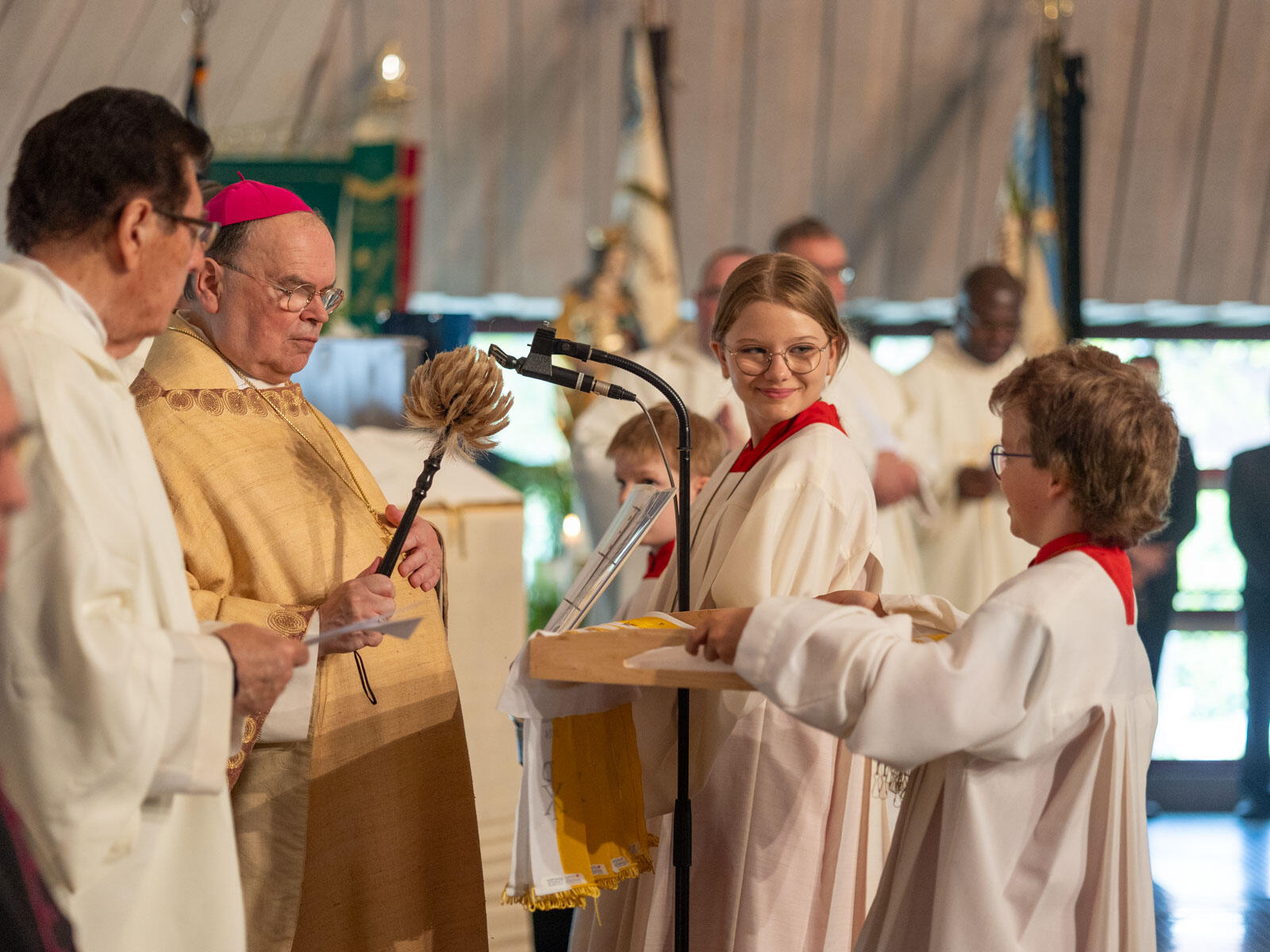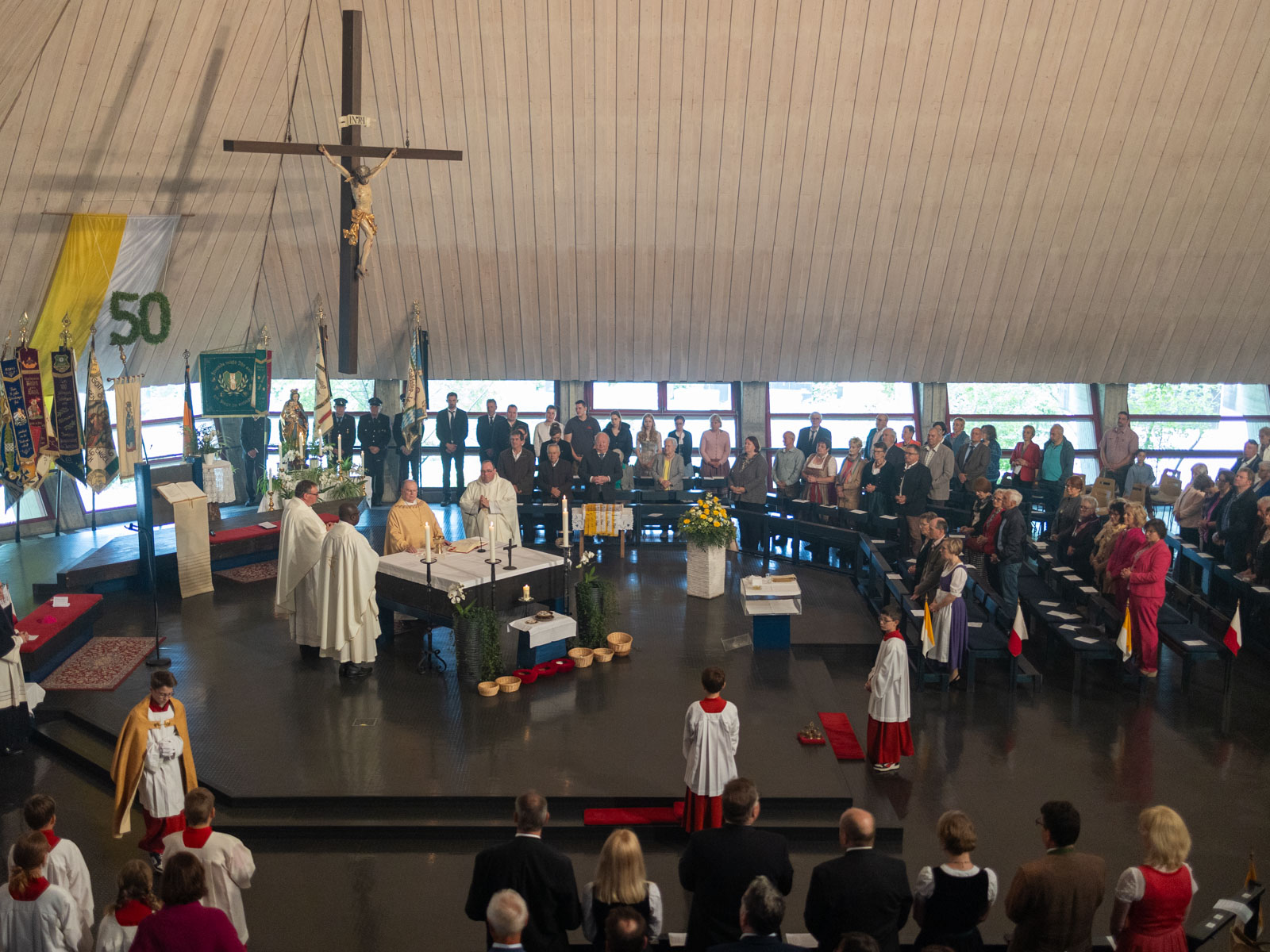 Mit Blick auf die weit mehr als die fünfzig Jahre seit dem Neubau umfassende kirchliche Tradition in Tandern werde klar, dass der Glaube eine von Gott geschenkte Gabe sei, „die aber auch gepflegt und gelebt werden muss.“ Die untrennbar damit verbundene Notwendigkeit einer Gemeinschaft werde wiederum in dem Neubau von St. Peter und Paul vorbildhaft spürbar, betonte Bischof Bertram abschließend in seiner Predigt und wandte sich mit einem letzten Wunsch an die Kirchengemeinde: „Helfen Sie mit, dass die Pfarreiengemeinschaft Tandern ein fruchtbarer Boden für das Wort Gottes bleibt, wo junge und alte Menschen ihre Berufung entdecken und ihre Begabungen entfalten können, zum Aufbau der Gemeinde und zum Wohle aller.“