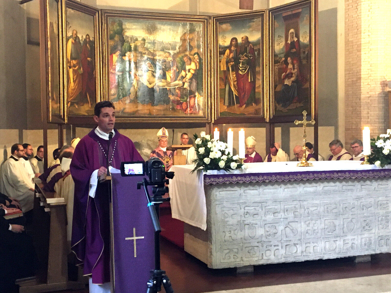 Der Bischof warnte davor, das eigene Herz mit einer Mauer zu umgeben, sodass die leisen Töne nicht mehr durchdringen: „Unsere Wahrnehmung wird oberflächlich, unsere Arbeitswelt technisch organisiert, auch die Kirche ähnelt immer mehr einem Betrieb. Das Wort Betriebsamkeit verrät uns! Ich kann mir vorstellen, dass auch eine Einrichtung wie diese – exponiert auf dem Territorium des Vatikans – von solchen Tendenzen nicht ausgenommen ist. Jeder hat seine eigene Agenda, jeder seine eigenen Aufgaben, jeder ist sich selbst der Nächste. Mühen wir uns im Tiefgang: als Menschen, als Studierende, als Wissenschaftler, als Männer und Frauen, die tiefer bohren und hören, was nicht gesagt wird; erlauschen, was zwischen den Zeilen mitschwingt; die leisen Zwischentöne wahrnehmen, die aus dem Herzen kommen und Gefühle berühren wie Angst oder Hoffnung, Ärger oder Freude, Trauer und Wut, aber auch Zuversicht und Gelassenheit. Hören ist keine Kür, sondern Pflicht.“