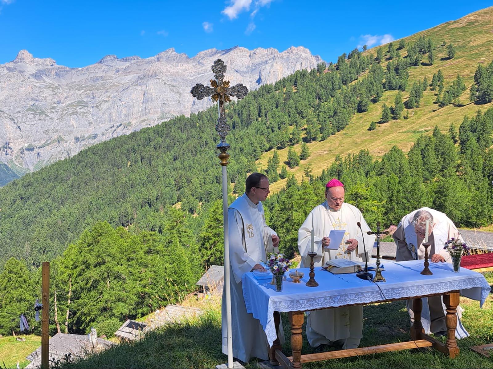 Im Rahmen eines Festgottesdienstes zum Schweizer Nationalfeiertag hat Bischof Bertram am Montag an die Größe des Schöpfers und an die Verantwortung des Menschen für die Schöpfung erinnert. Vor einer grandiosen Bergkulisse feierte der Bischof die Eucharistie auf der Alpe Chermignon bei Leuk im Wallis. Zahlreiche Familien sowie Vertreter des öffentlichen Lebens im Kanton Wallis nahmen daran teil.