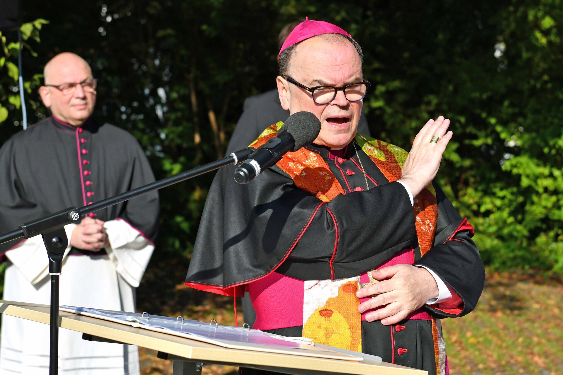 Das neue Kinderhaus zeige uns, was Kirche ist. „Wo Kinder leben, sich austoben, sich entwickeln können, da ist nicht nur ein Kinderhaus, da treffen wir auf Kirche. Ihr Kinderhaus ist ein Gotteshaus“, betonte er bereits in seiner Predigt beim Festgottesdienst. Denn wo Kinder seien, da sei auch Jesus. „Denn Jesus mag die Kinder, die Kleinen, diejenigen, die oft übersehen werden wie damals Zachäus“, nahm der Bischof Bezug auf das Evangelium vom Zöllner der um wahrgenommen zu werden auf einen Baum stieg. Wie im Kinderhaus, so sollten auch in der Kirche Kinder, junge Menschen im Zentrum stehen. „Eine Kirche ohne Kinder hat keine Zukunft.“