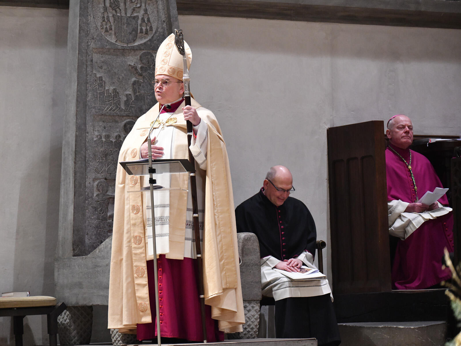 Im Hinblick auf den Synodalen Weg warb der Bischof um die Bereitschaft zur Versöhnung: „Veränderung gelingt nur, wenn sie sich paart mit einem Weg der Versöhnung. Der Synodale Weg begann mit dem Schock über die schweren Verletzungen, die kirchliche Verantwortungsträger ihnen anvertrauten Menschen zugefügt hatten. Gemeinsam sind wir vor drei Jahren in Frankfurt gestartet mit dem Ziel: Nie wieder! Seitdem gab es auch unter uns Verwerfungen und Verwundungen. Doch synodale Kirche geht nur, wenn wir einander verzeihen, wenn unser Verhalten getragen ist von Wohlwollen und Respekt. Sonst ist es mit unserer Stimmung wie mit der Weihnachtsbeleuchtung: Ich schalte sie ein und schalte sie ab – je nach Bedarf. - Wir sind in einer ‚synodía‘, in einer Reisegesellschaft. Wohin die Reise geht – in Deutschland und in der Welt, das hängt auch davon ab, wie groß unsere Versöhnungsbereitschaft ist.“