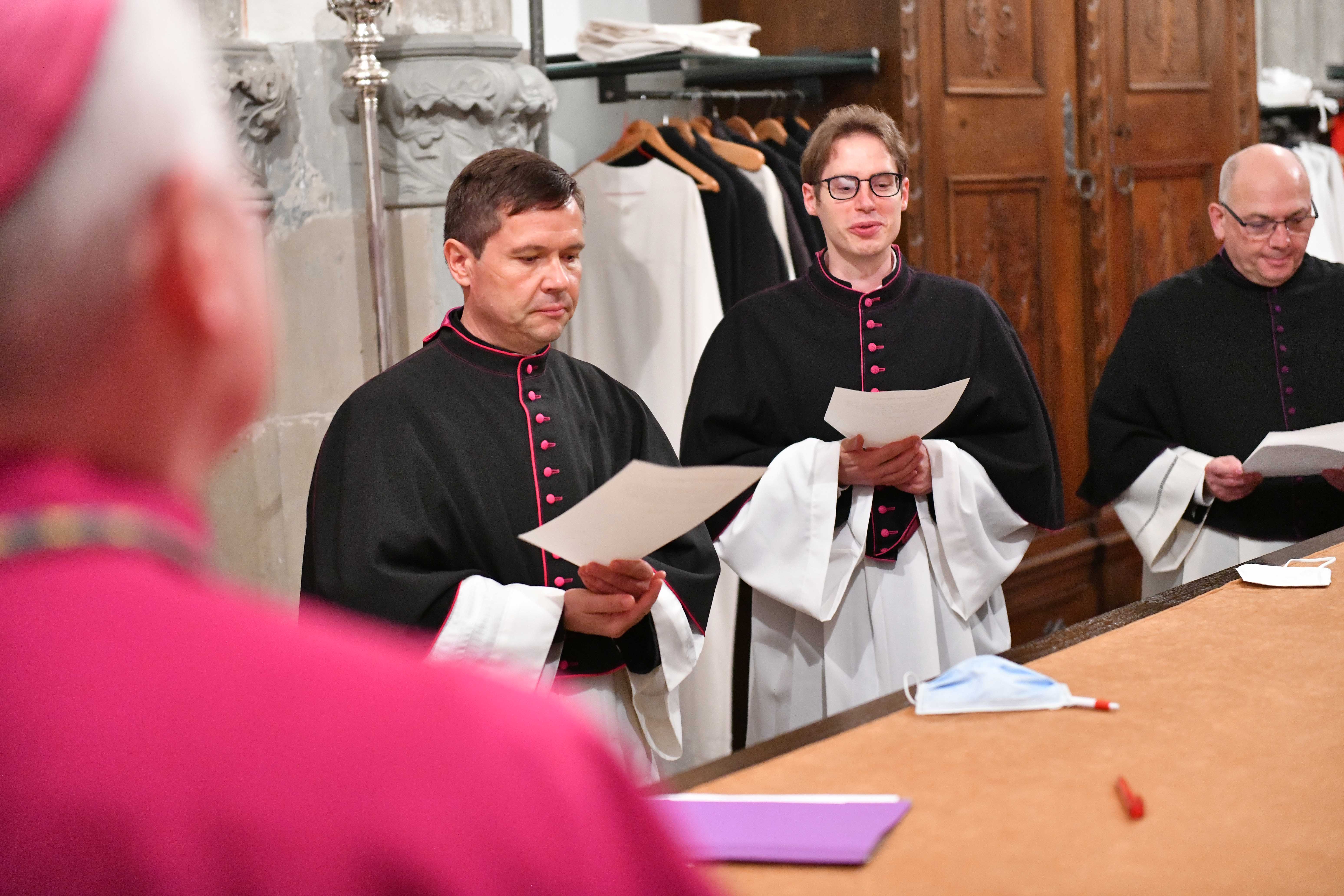 Ulrich Müller ist der Zeremoniar des Bischofs und ein Mann, so der Bischof, "der die Liturgie liebt". Peter Seidel ist Personalreferent für die Priester - in dieser Funktion, wie Bischof Bertram sagte, "oft auch Seelsorger für seine Mitarbeiter". Tobias Wolf arbeitet als Diözesanjugendpfarrer und war, wie der Bischof offenbarte, ihm schon in seiner Kaplanszeit aufgefallen, weil er immer Glauben und Vernunft zusammen betrachtet habe.