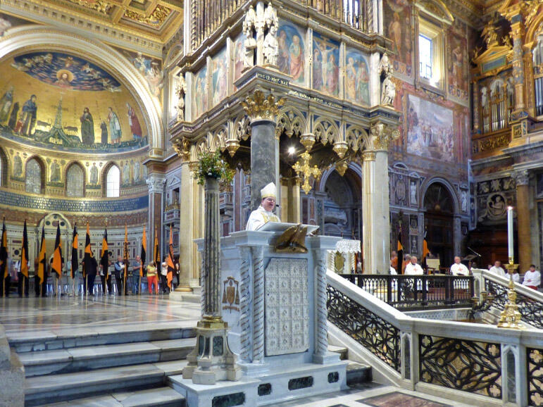 Anlässlich des 30. Jahrestags der Seligsprechung Adolf Kolpings (27. Oktober 1991) war im vergangenen Jahr eine große internationale Wallfahrt nach Rom geplant. Diese fiel coronabedingt aus. So ließen es sich heuer hunderte Kolpingmitglieder nicht nehmen, rund um den Jahrestag in die ewige Stadt zu pilgern und gemeinsam mit Bischof Bertram an diesem Donnerstag einen Festgottesdienst in der Lateranbasilika zu feiern.