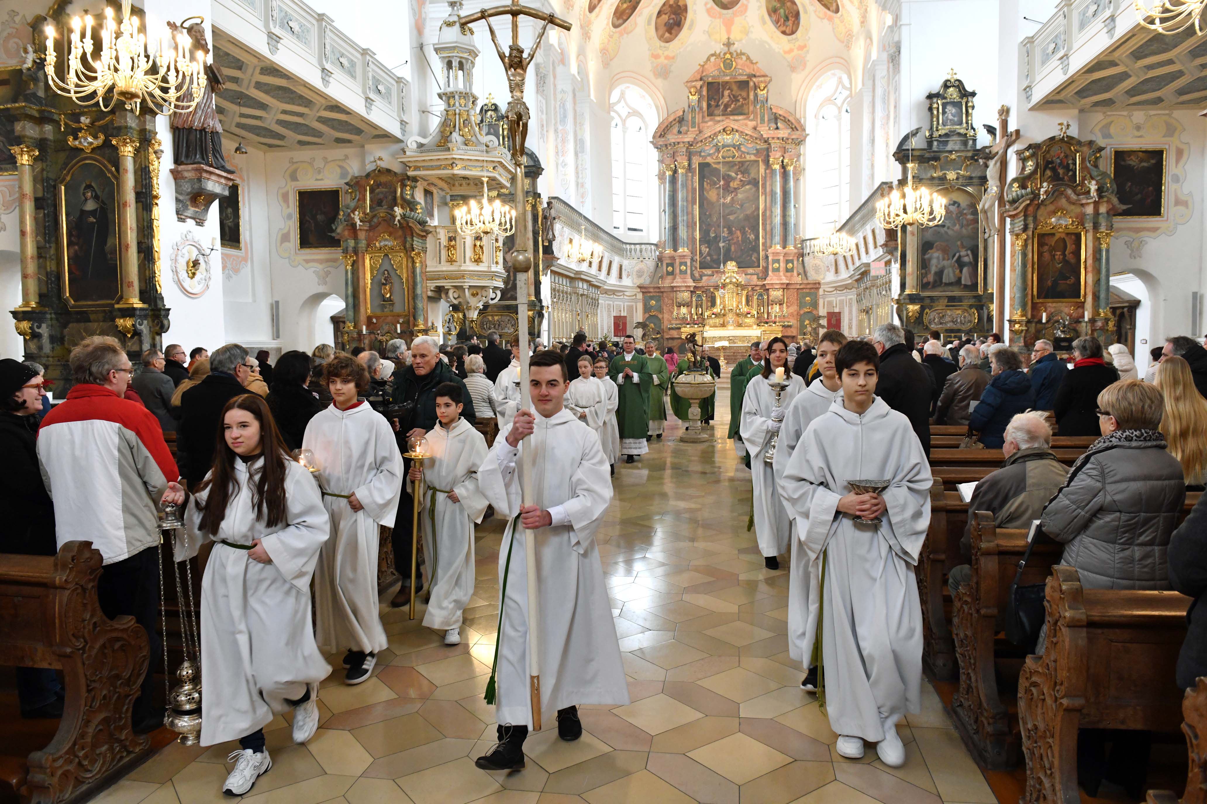 Abschließend gratulierte Bischof Bertram allen Beteiligten zur gelungenen Sanierung und der damit verbundenen Gemeinschaftsleistung und erinnerte an die Bedeutung von Dillingen im Allgemeinen und Gotteshaus im Speziellen in der Geschichte des Bistums und die damit verbundene besondere Verantwortung. „Die Basilika strahlt nach der Sanierung der Altäre und Restaurierung der Bilder wieder in prachtvollem Glanz. Damit legen Sie, liebe Dillinger, ein Statement ab: dass Ihnen dieser Kirchenraum als Zentrum und Identifikationspunkt, als heiliger Ort der Gemeinschaft und der Gottesbegegnung wichtig ist.“ Zudem bedankte er sich bei allen tatkräftigen Helfern und finanziellen Spenderinnen und Spendern von ganzem Herzen. „Vergelt’s Gott für jedwede Unterstützung!“