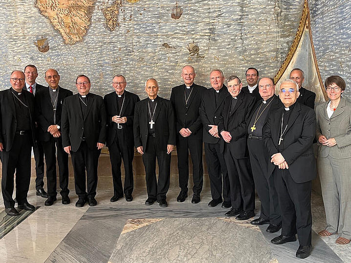 Dem Wunsch des Heiligen Vaters Franziskus entsprechend, haben sich an diesem Freitag Vertreter der Römischen Kurie und der Deutschen Bischofskonferenz, darunter auch Bischof Bertram, zu einem weiteren Gespräch im Vatikan getroffen. Dabei handelt es sich um die Fortsetzung des Dialogs, der beim Ad-limina-Besuch der deutschen Bischöfe im November 2022 begonnen und beim letzten Zusammentreffen am 22. März 2024 fortgesetzt wurde.