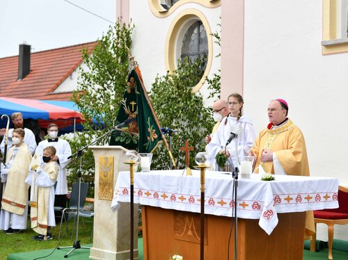 Bei einem Pontifikalamt im Freien zur Wiedereröffnung der Filialkirche St. Leonhard in Roth bei Pfaffenhofen hat Bischof Bertram die Gläubigen dazu aufgerufen, nicht auf der „Tourismusterrasse“ zu bleiben. Vielmehr gelte es, im Boot der Kirche und Vertrauen auf das „tragende Lebenswasser“, den Aufbruch zu wagen und in die stürmische See zu stechen. Dem scheidenden Pfarrer, Reinfried Rimmel, rief er für seine neuen Aufgaben in Augsburg „Schiff ahoi“ zu.