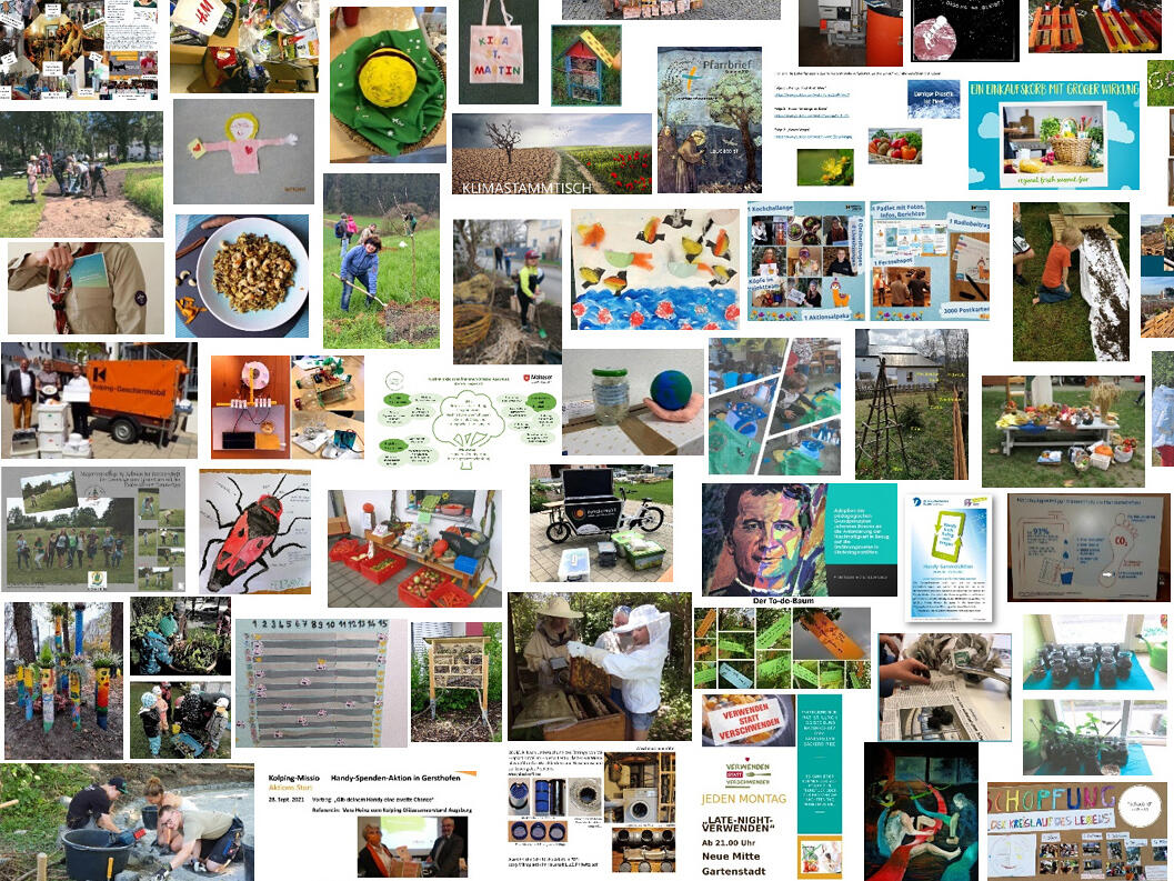 Den ersten Preis in der Kategorie „Kitas“ erhielt das Kinderhaus St. Raphael in Rettenbach, die Pfarreiengemeinschaft Dießen am Ammersee gewann im Bereich „Pfarreien“. Die Realschule Maria Stern in Nördlingen wurde in der Kategorie „Schulen und Jugendliche“ ausgezeichnet, der Diözesanverband „pax christi“ im Bereich „Verbände, Einrichtungen und Sonstiges“. Darüber hinaus kürte die Jury in den einzelnen Kategorien auch zweite und dritte Sieger für ihr Umweltengagement.