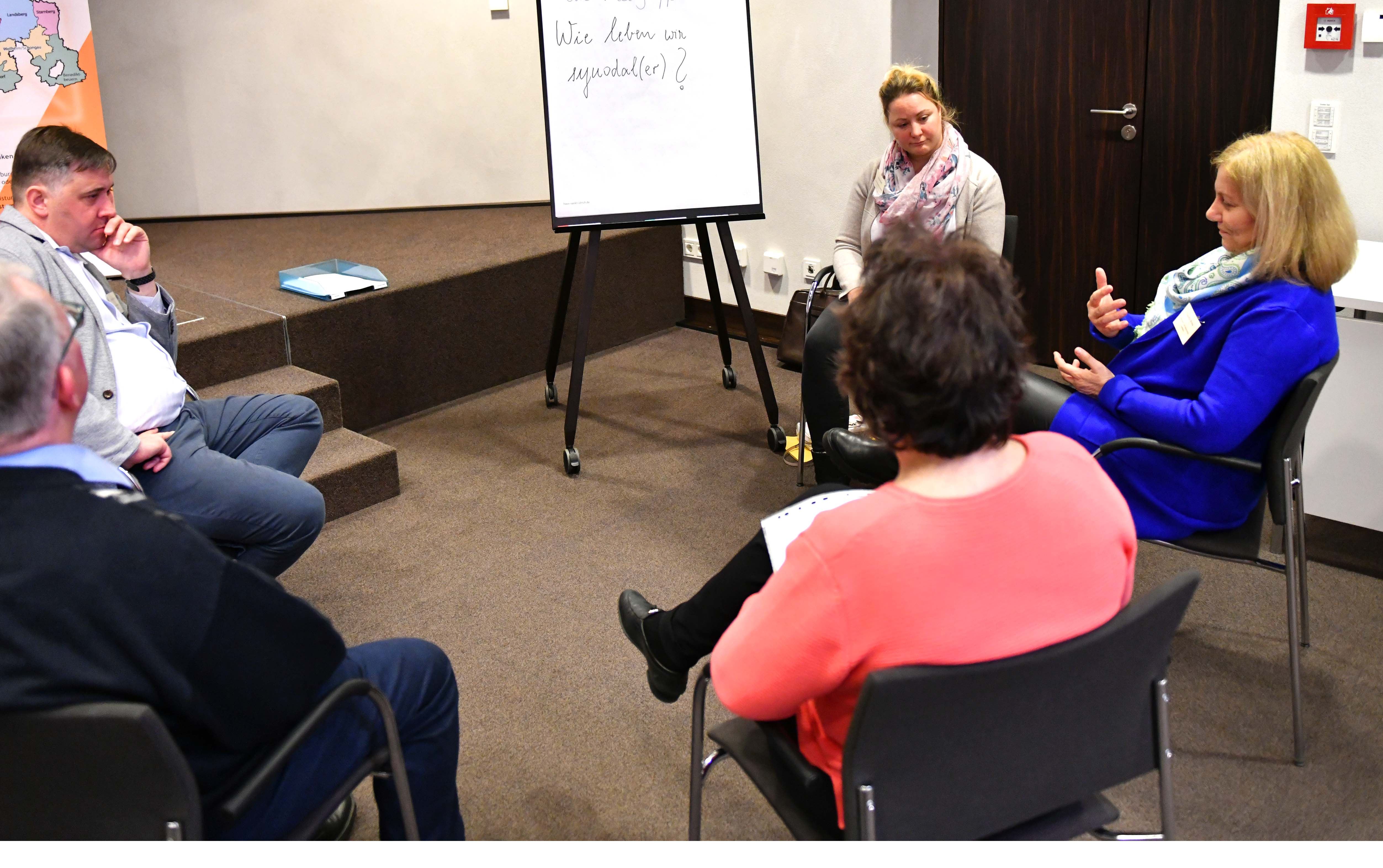 Und genau das taten die Mitglieder des Diözesanrates dann auch, als sie in einer synodalen Übung sich in kleinen Gruppen zusammenfanden, darüber sprachen, was für sie "Synodalität" bedeutet, und einander viel Raum für das gegenseitige Zuhören gaben. Kann man sich darauf einlassen, mit dem Ohr des Herzens auf das Gegenüber zu hören?