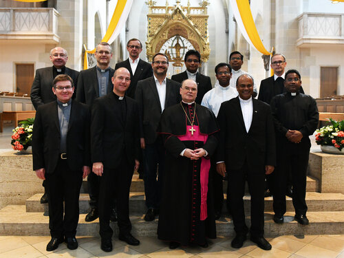 Augsburg (pba). Bischof Dr. Bertram Meier hat heute in der Klosterkirche der Erzabtei St. Ottilien gemeinsam mit dutzenden Welt- und Ordenspriestern des Bistums Augsburg deren Weihejubiläum gefeiert. In seiner Predigt dankte er ihnen für ihren treuen Dienst und ermunterte sie dazu, nach dem Vorbild der heiligen Maria Magdalena weiter mutig voranzuschreiten.