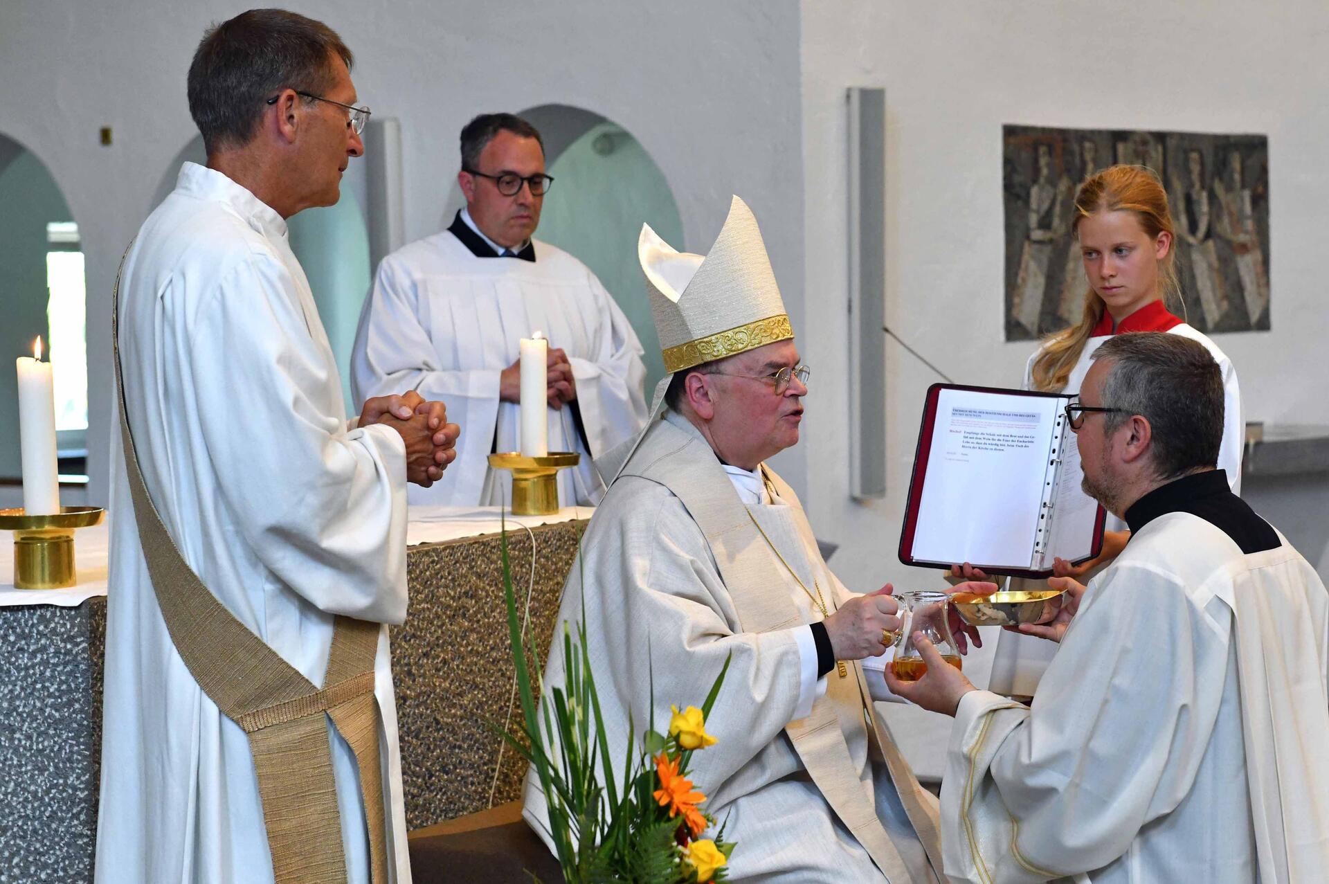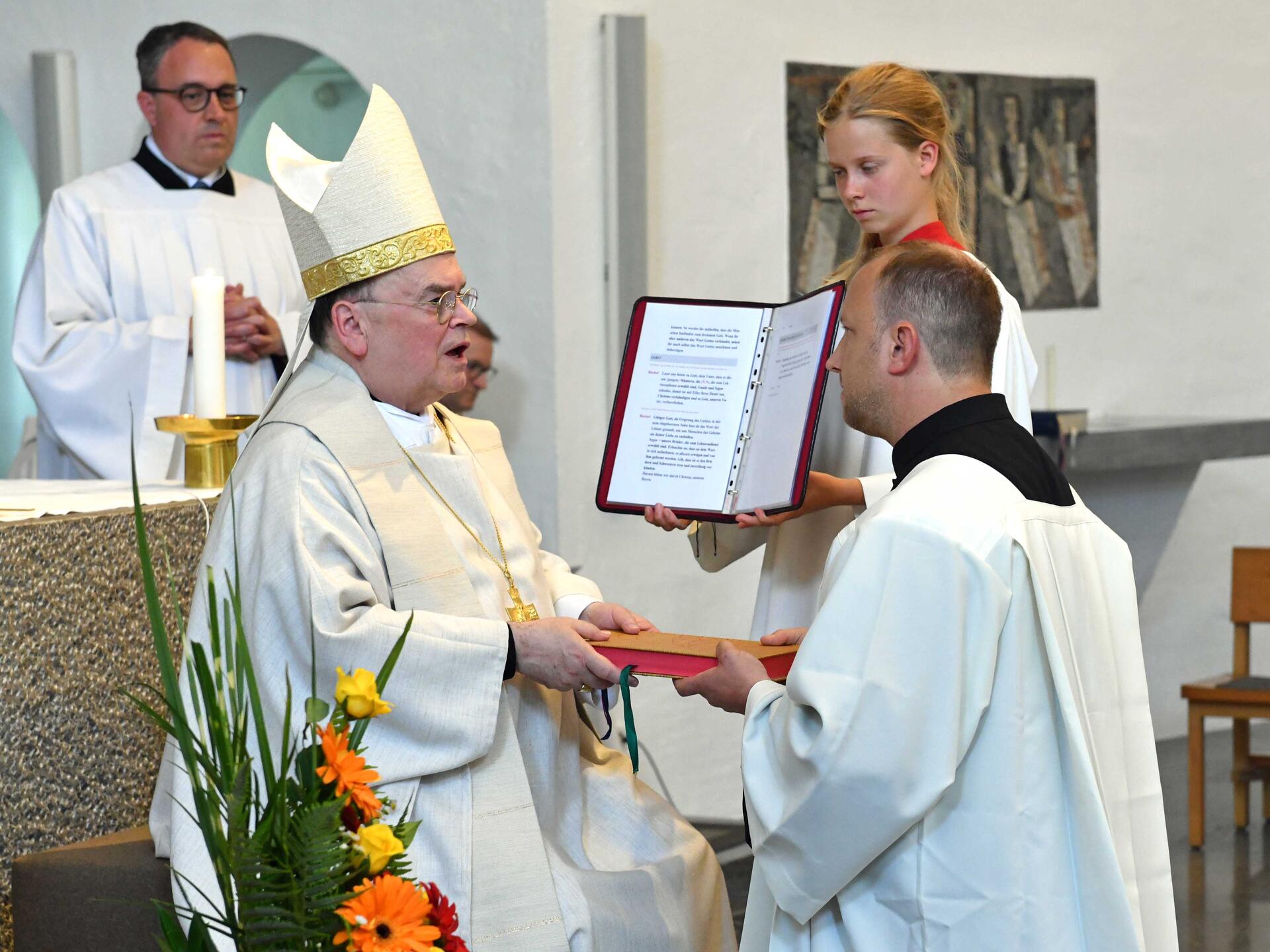Den Dienst als Akolythen bezeichnete der Bischof als „einen ganz hohen Auftrag“, speziell gegenüber den alten und kranken Menschen, die die heilige Kommunion nach Hause gebracht bekämen. „Seien Sie Diener des Herrn in der konsekrierten Hostie!“