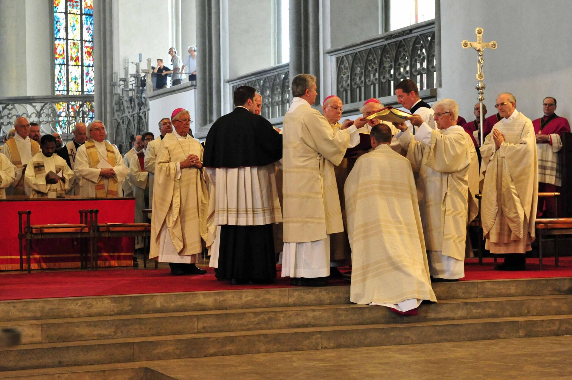 Am Ende der Weiheliturgie gab der neue Weihbischof im vollbesetzten Augsburger Dom Einblicke in seine Gefühlswelt: „Bestens behütet, habe ich mir gedacht als das aufgeschlagene Evangeliar über meinen Kopf gehalten wurde. Eine bessere Kopfbedeckung als das Wort Gottes kann man sich nicht mehr denken.“