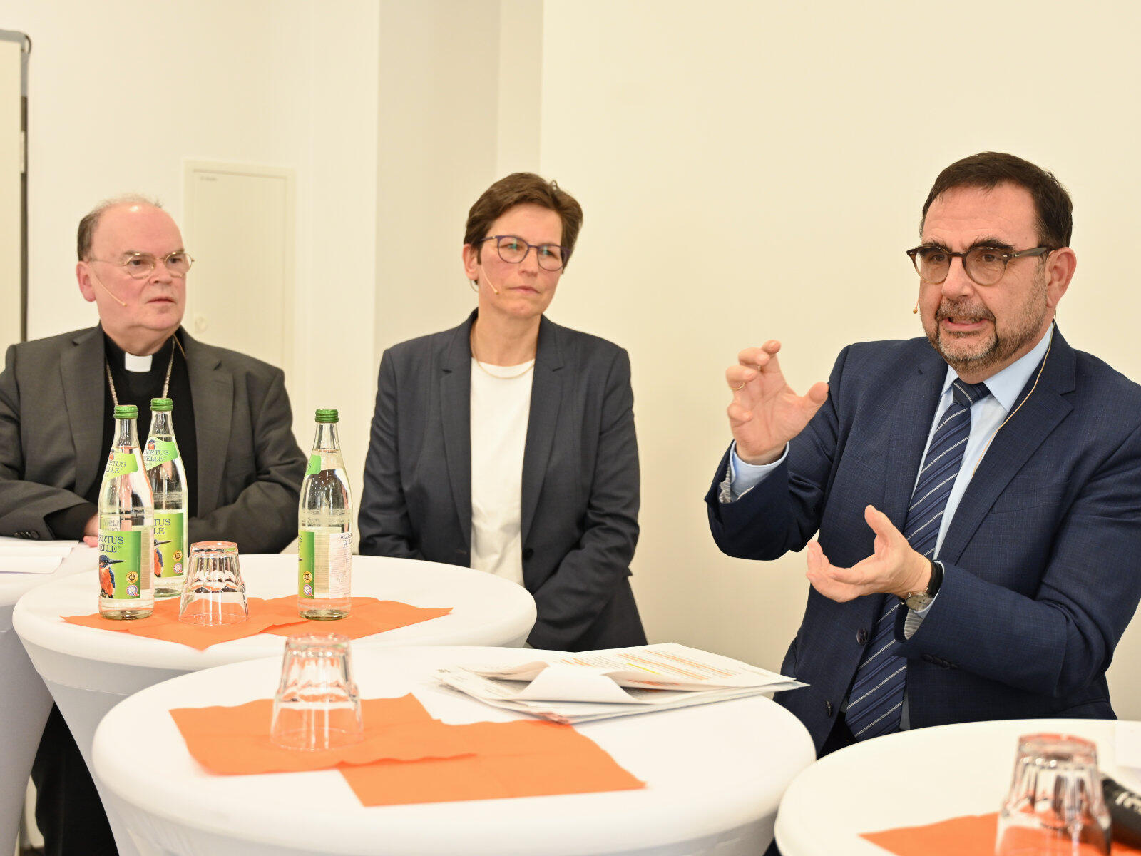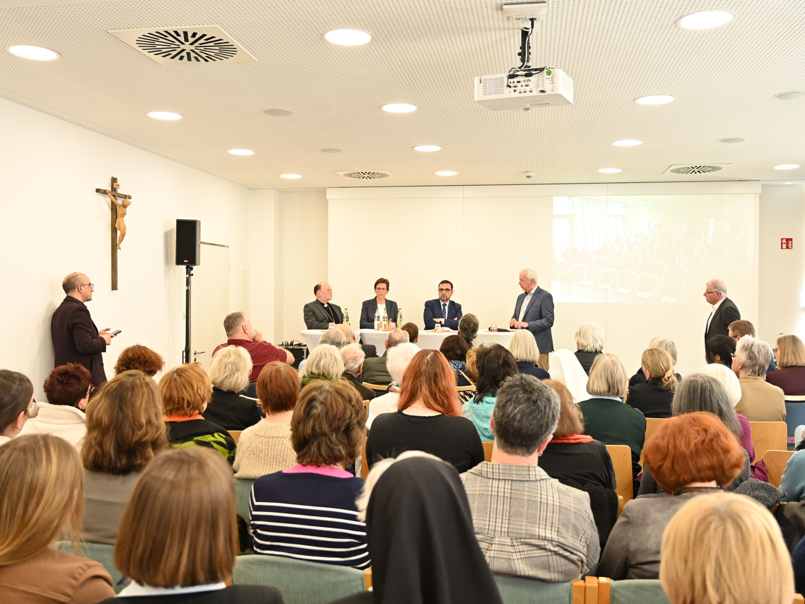 Drei Jahre ist es her, dass das Bundesverfassungsgericht den Gesetzesgeber aufforderte, einen rechtlichen Rahmen für den assistierten Suizid zu schaffen. Im St. Vinzenz-Hospiz diskutierten Bischof Bertram, Staatsminister Klaus Holetschek und Professorin Claudia Bausewein über die schwierige Frage der Sterbehilfe im Palliativbereich und darüber, wie sich gesetzliche und kirchliche Positionen vereinbaren lassen.